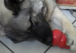 Here’s something you don’t see too often. A Dobermann eating a pickle. OK, so he’s not actually eating “the” pickle, but he’s eating from the pickle. The Starmark Pickle toy. What a greatly designed toy it is, too! It keeps dogs occupied for long spurts of time. Luigi the Dobermann is almost 13 years old, and sometimes it’s difficult to find the right toy for him, but he loves his pickle toy! And it gives him a mental workout, as {Read More}